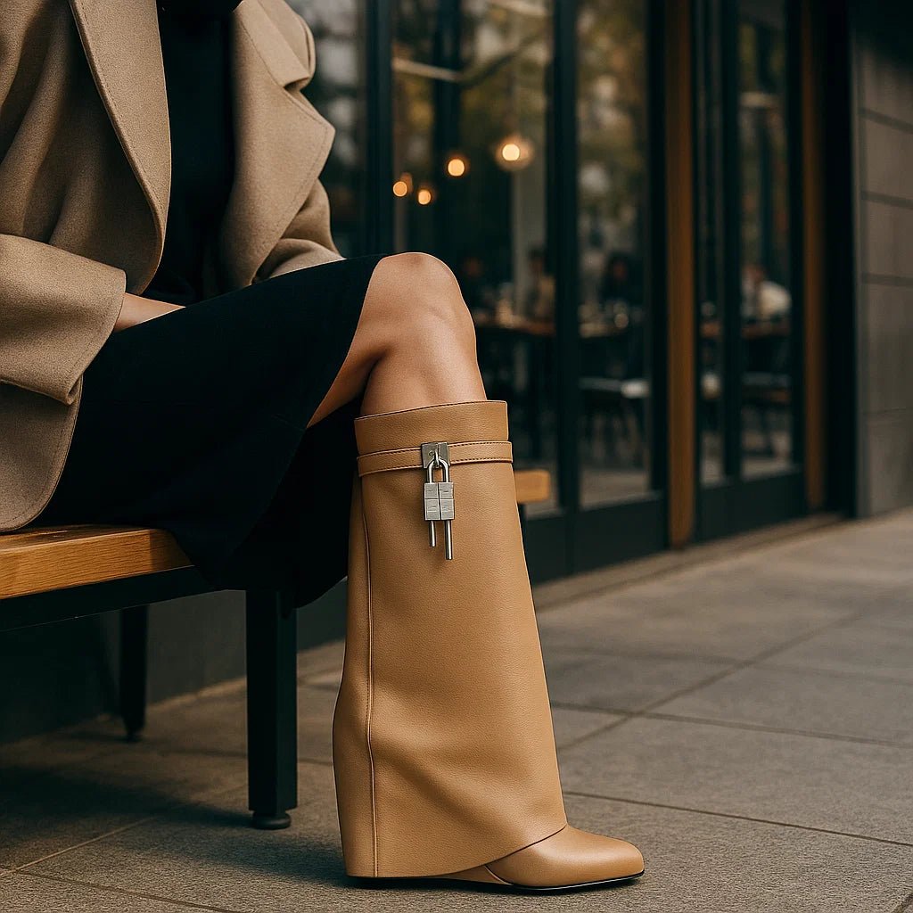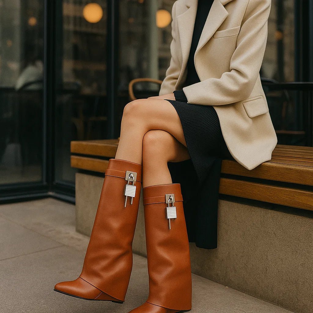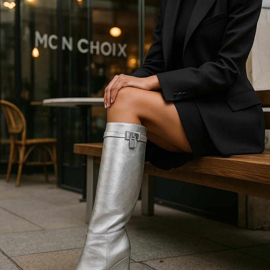Kozaki do kolan - Gruba płaska podeszwa - Retro klamra