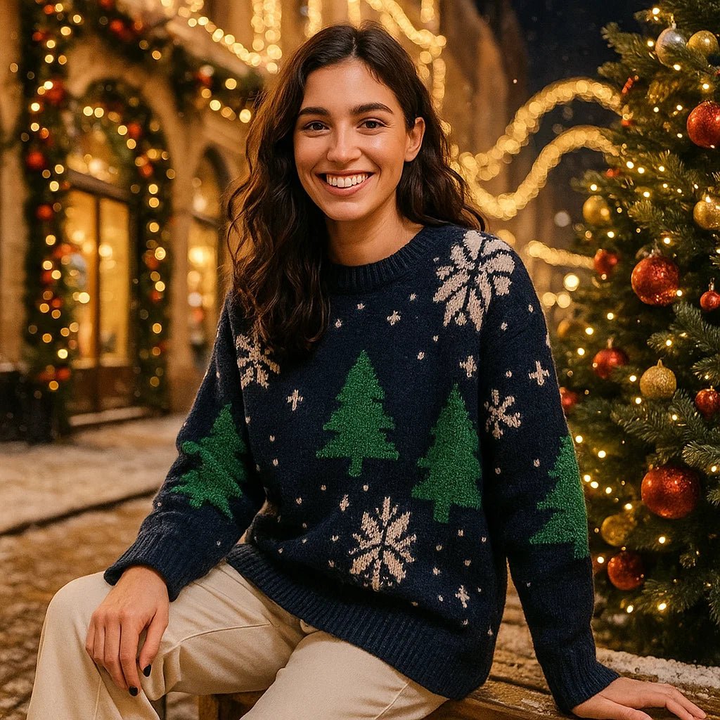 Cassandra – Świąteczny Sweter z Okrągłym Dekoltem