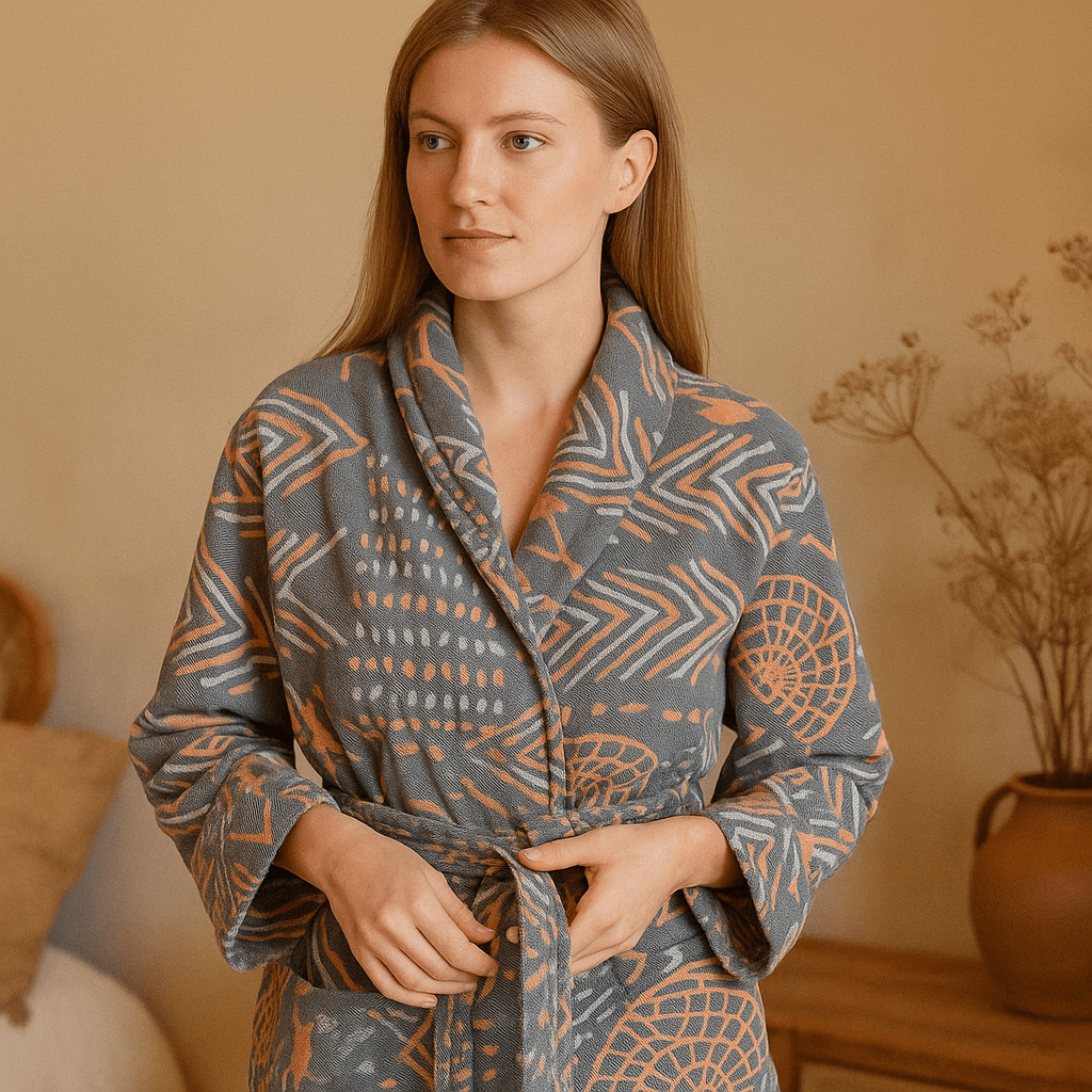 VeluSage – Wyrafinowany Bawełnowy Szlafrok z Detalem Jacquard dla Czystego Relaksu