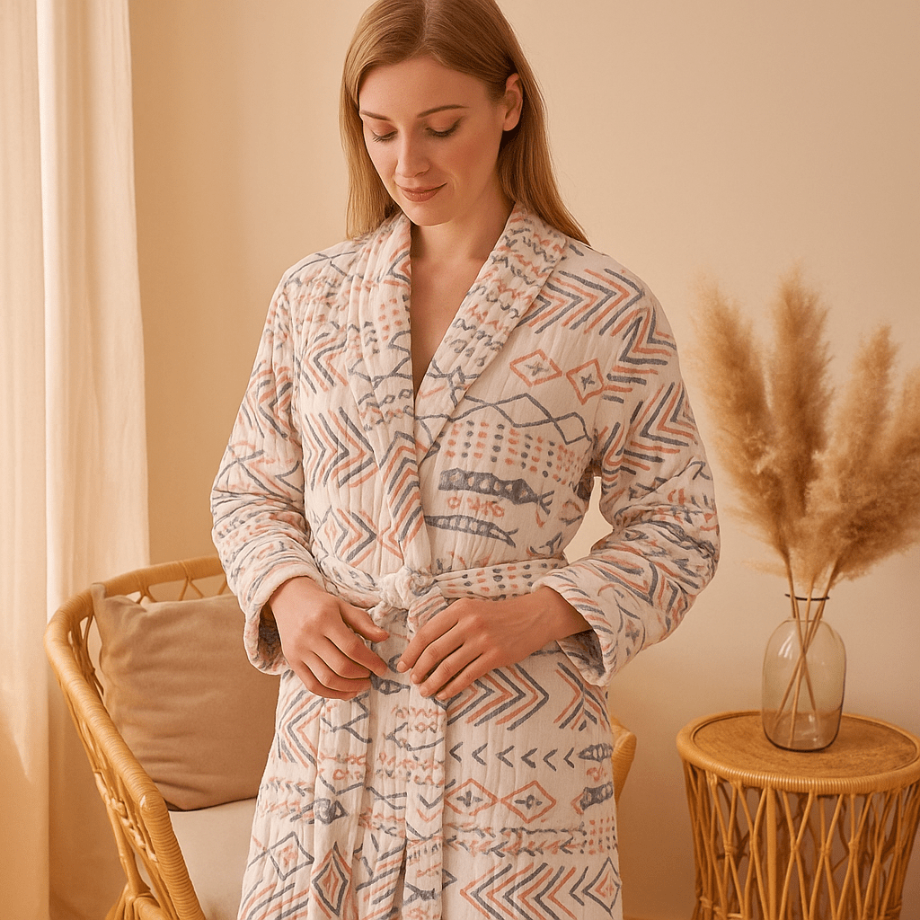 VeluBloom – Luksusowy Szlafrok Bawełniany z Delikatnym Wzorem Żakardowym dla Stylowego Relaksu