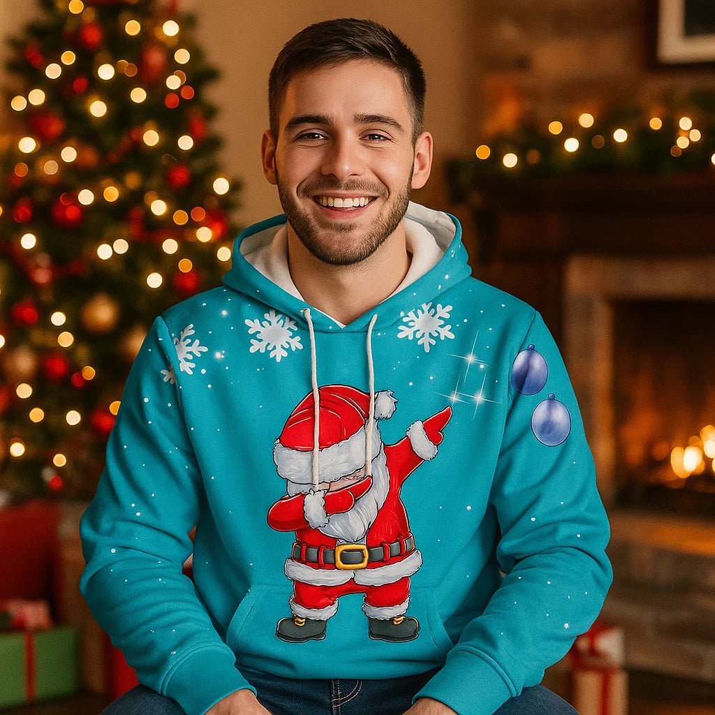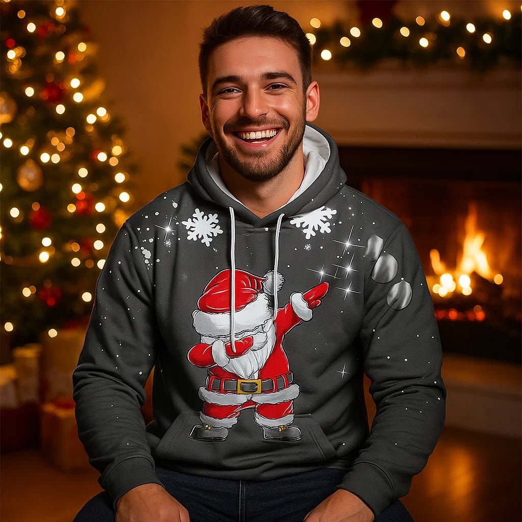 Bluza Henrick z uroczymi świątecznymi nadrukami łączy ciepło i wygodę, dodając radosnego akcentu zimowym dniom. Dzięki regulowanemu kapturowi i obszernej kieszeni jest praktycznym wyborem na relaks, zakupy czy spotkania świąteczne.
