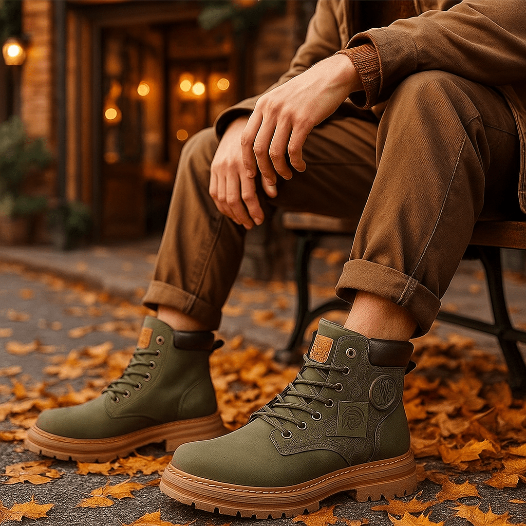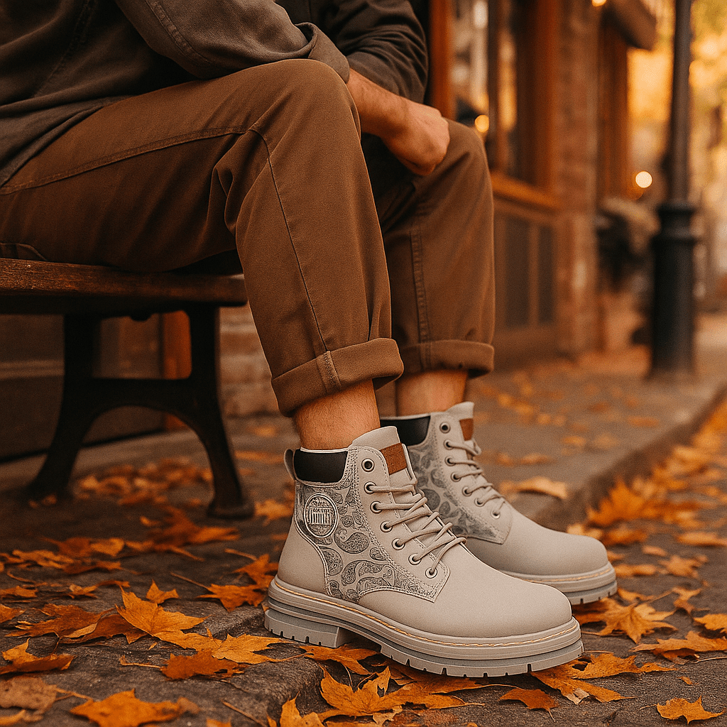 Męskie Sznurowane Buty Robocze z Wzorzystym Bokiem